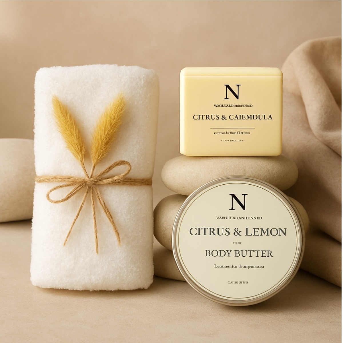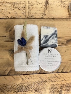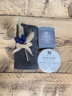 Indulge in the ultimate self-care experience with our Natural and Organic Skincare Gift Boxes. Exfoliate and nourish your skin with our luxurious salt bar soap and hydrating body butter, designed to moisturise and revitalise, leaving your skin feeling supple and rejuvenated. Complementing these skincare treasures is an organic face cloth, the perfect companion for your daily cleansing rituals.